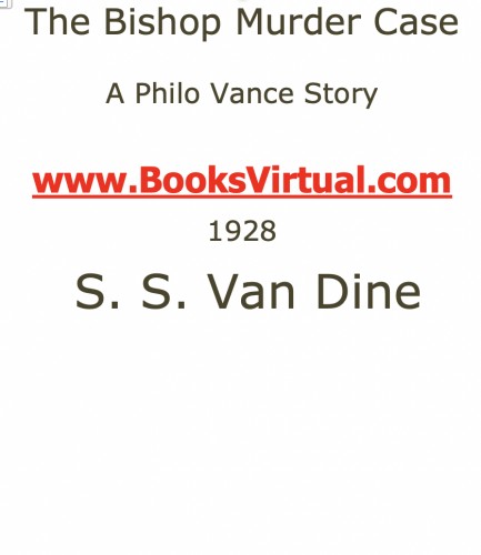 ViewThe Bishop Murder Case is the fourth in a series of mystery novels by S. S. Van Dine about fictional detective Philo Vance. The detective solves a mystery built around a nursery rhyme. The Bishop Murder Case is believed to be the first nursery-rhyme mystery book.